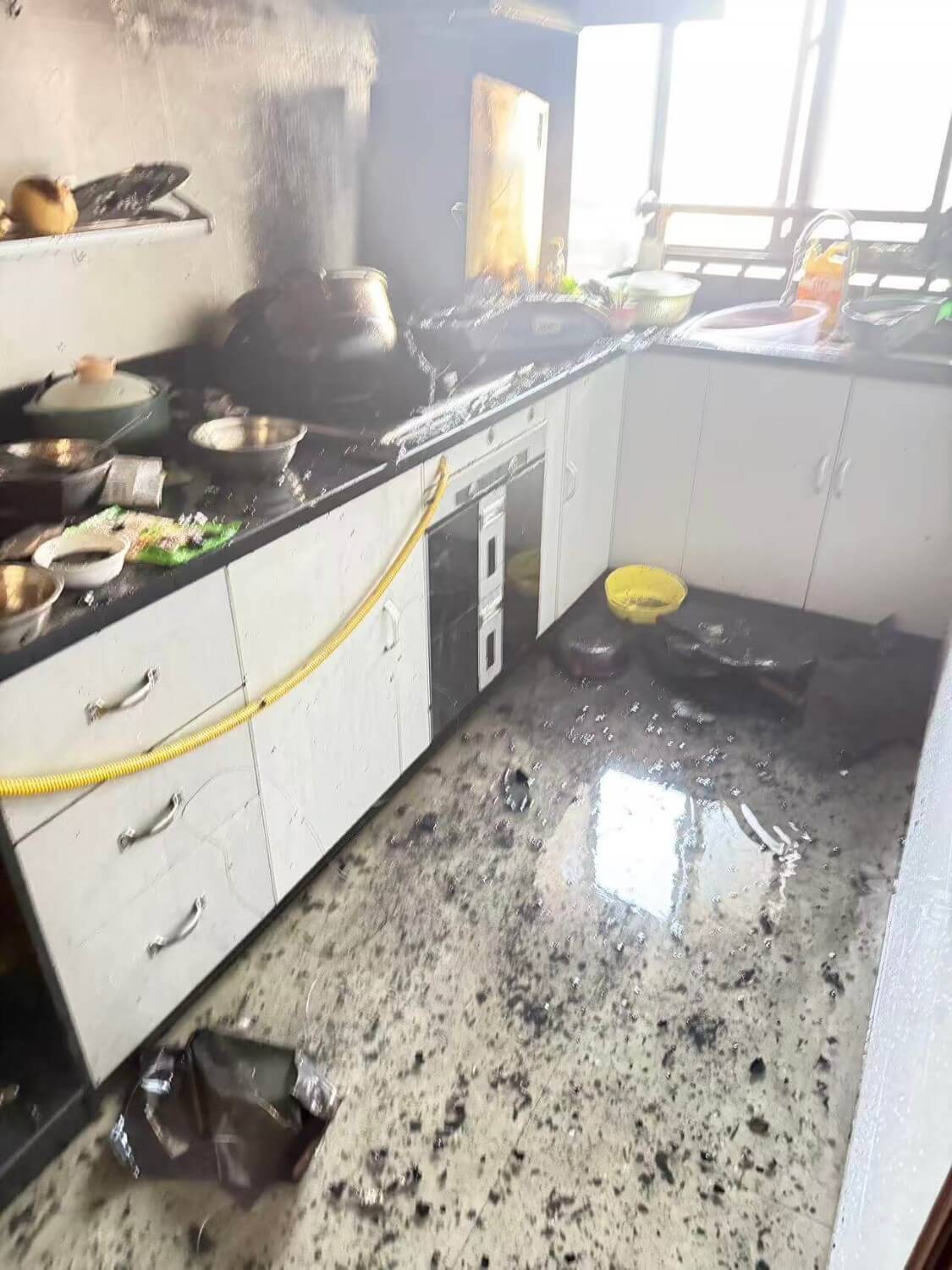 万幸,大火顺利扑灭,是14楼的厨房着火了,火势被控制在厨房里,没有蔓延。